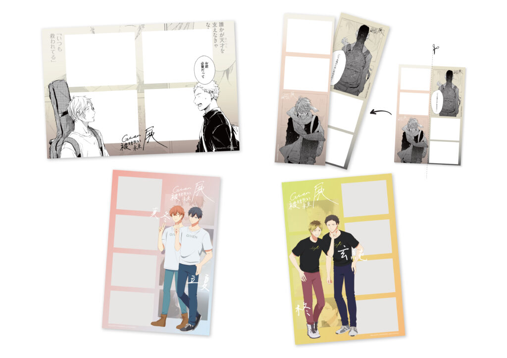 All visitors to “GIVEN Exhibition” will receive one exhibition shikishi card and one admission gift. The exhibition shikishi cards come in four designs, distributed at random. The admission gifts come in two versions, released on different dates during the exhibition period.