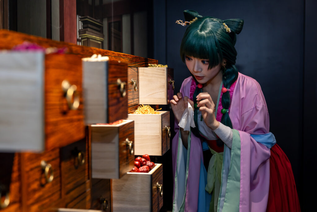 As the first official exhibition since the anime aired, “The Apothecary Diaries Exhibition” makes its international debut at INCUBASE Arena in Mong Kok, offering a sneak peek into Maomao’s investigative adventures before Season 3 and the film release. The exhibition is divided into multiple immersive zones, blending life-sized sets with video content to recreate iconic palace and pleasure district scenes from the anime’s first season. Fans can admire Maomao and Jinshi’s intricate costumes and explore the unique charm of each character.